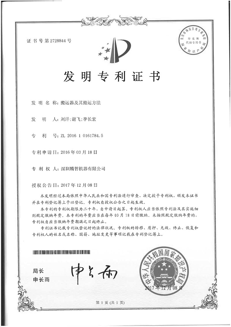 您現在的位置:首頁 > 關于精智 > 專利證書